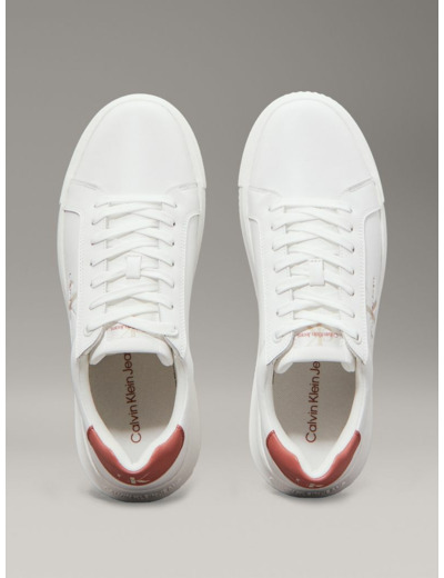 Fabriquées en cuir souple, ces low-top trainers offrent un confort optimal grâce à leur semelle intérieure en mousse qui épouse délicatement la forme de votre pied. La semelle extérieure en TPR assure une adhérence fiable, vous permettant de vous déplacer avec aisance, que ce soit pour une promenade en ville ou une sortie entre amis. Le logo emblématique de Calvin Klein, subtilement apposé sur le côté, la languette, le talon et la cheville, témoigne de l’authenticité et de l’élégance de la marque.