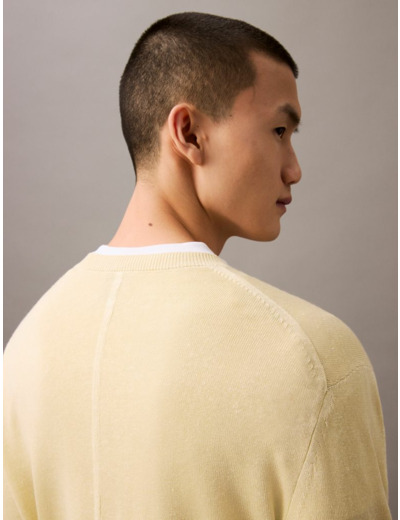 La composition de ce pullover mêle 66 % de lin et 34 % d’acrylique, un mélange qui offre à la fois légèreté et résistance. Le lin, matière naturelle et respirante, apportait une sensation de fraîcheur agréable, tandis que l’acrylique renforçait la tenue et facilitait l’entretien. Cette alliance subtile garantissait un confort optimal, même lors des journées plus fraîches.
