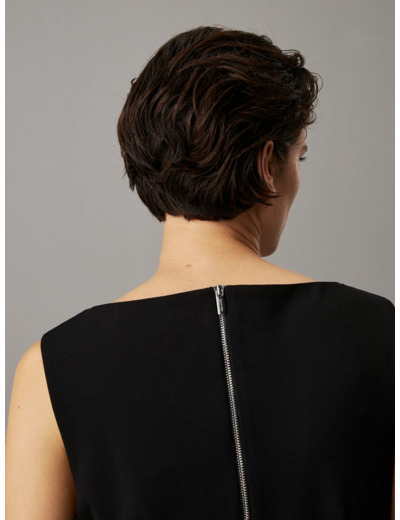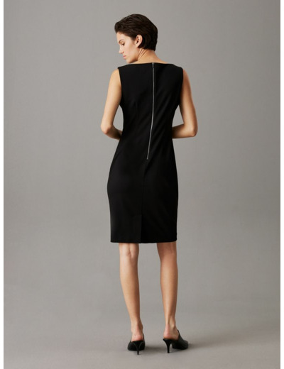 Cette robe bodycon, sans manches, est conçue pour épouser délicatement les courbes féminines. Son tissu extensible offre une liberté de mouvement inégalée, vous permettant de vous sentir à l’aise tout au long de la journée. Que ce soit pour une soirée entre amis ou un rendez-vous professionnel, cette robe s’adapte à toutes les situations. La marque Calvin Klein, synonyme de sophistication et de modernité, vous garantit un look chic et tendance.