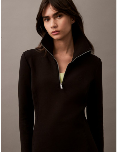 Confectionnée à partir d’un mélange de 94% coton certifié Better Cotton Initiative et 6% élasthanne, cette robe garantit douceur et souplesse. Le coton assure une agréable respirabilité tandis que l’élasthanne apporte une légère élasticité, permettant une liberté de mouvement appréciable tout au long de la journée. Ce choix de matières reflète l’engagement de Calvin Klein envers une mode plus responsable, sans sacrifier le confort ni la qualité.