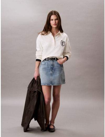 La coupe est fidèle aux standards Calvin Klein, et la modèle porte une taille S pour référence, ce qui facilite le choix de votre taille habituelle.