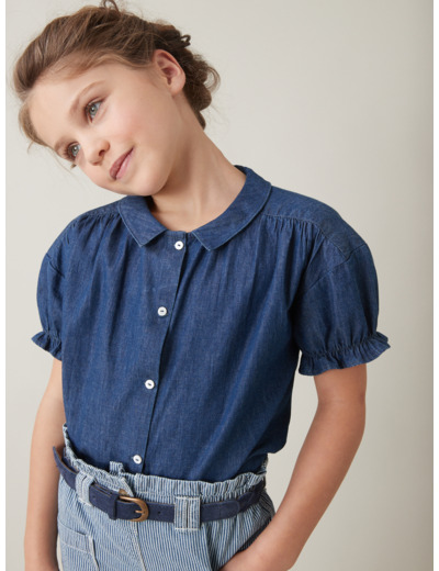 Offrez à votre fille un look à la fois tendance et confortable avec cette blouse manches courtes en denim. Un essentiel qui allie style urbain et douceur, parfait pour toutes les occasions.