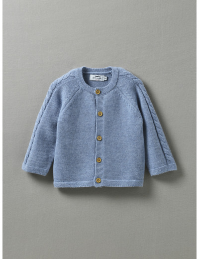 Fabriqué en maille torsadée, ce cardigan est composé majoritairement de coton pour une douceur maximale. Disponible en plusieurs tailles adaptées aux bébés, il se ferme par une rangée de boutons sur le devant. Lavable en machine, il conserve sa forme et sa couleur au fil du temps.