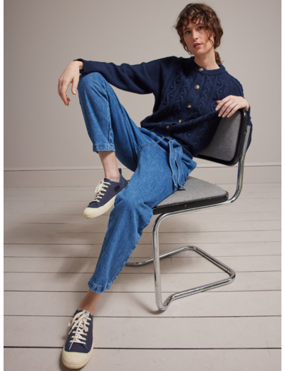 Confectionné avec soin, ce gilet se distingue par son motif torsadé délicat et ses pompons ludiques qui apportent une touche de fantaisie. Sa coupe ajustée assure une silhouette élégante tout en garantissant une liberté de mouvement idéale pour les journées actives. Parfait pour les saisons fraîches, il se porte aussi bien sur une robe légère que sur un jean casual.