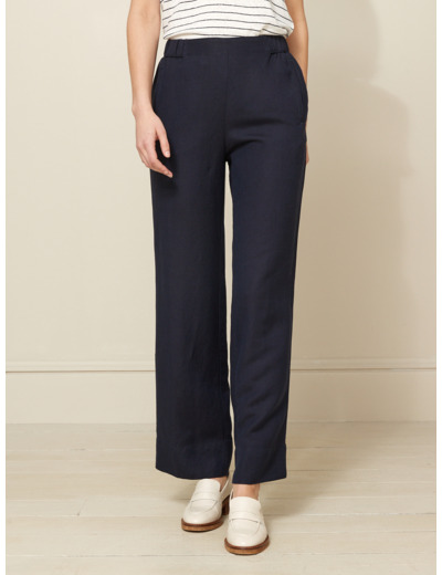 Matière : mélange lin et viscose. Coupe fluide avec taille élastiquée pour un ajustement optimal. Disponible en plusieurs tailles pour convenir à toutes les morphologies.