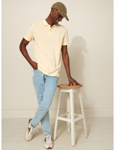 100% coton piqué, maille respirante. Coupe ajustée. Disponible en plusieurs coloris. Lavable en machine à 30 degrés. Finition soignée avec col et manches côtelés.