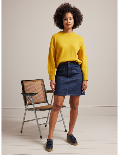 Fabriqué en laine mérinos 100%, ce pull présente une coupe boxy ample avec des finitions soignées aux bords-côtes. Disponible en plusieurs tailles, il se lave à la main ou en cycle laine pour préserver sa qualité.