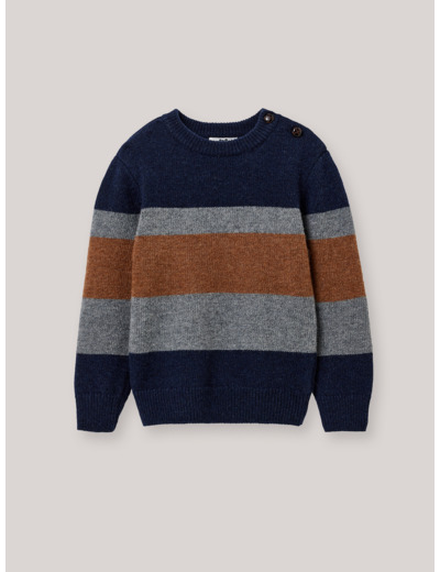 Confectionné dans une matière douce et résistante, ce pull se distingue par ses rayures graphiques qui apportent une touche de dynamisme à la tenue. Facile à associer, il accompagne aussi bien un jean qu’un pantalon plus habillé, pour un look casual ou soigné sans effort.