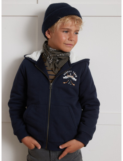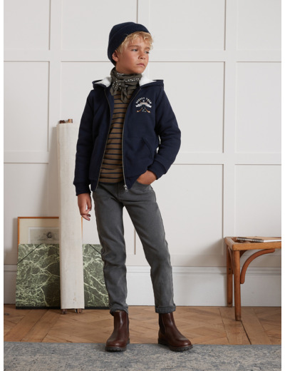 Offrez à votre garçon un confort inégalé avec ce pull zippé sherpa, alliant chaleur et style décontracté. Une pièce essentielle pour affronter les journées fraîches avec aisance et modernité.