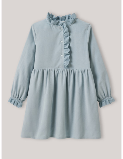 Disponible en plusieurs tailles adaptées aux filles, cette robe est confectionnée en velours 100% polyester, avec une coupe droite et des manches longues. Elle se ferme par un zip discret au dos pour un enfilage rapide et pratique.