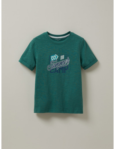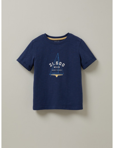100% coton slub, coupe droite, col rond, manches courtes. Disponible en plusieurs tailles adaptées aux garçons. Lavable en machine à 30 degrés.