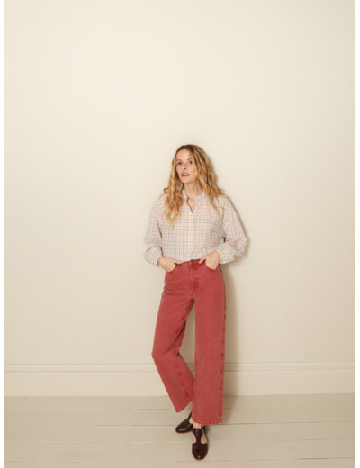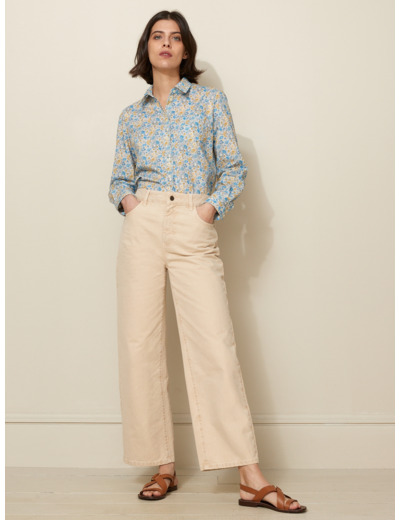 Fabriqué en denim 100 % coton, ce pantalon présente une taille ajustable pour un maintien parfait. Il dispose de poches latérales fonctionnelles et d’une fermeture zippée avec bouton, alliant praticité et style.