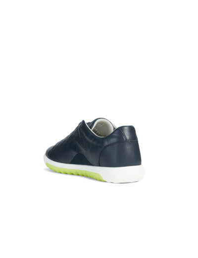 Les NexsideTM, en cuir nappa bleu marine, sont vouées à la respirabilité et à l’amorti. Ce modèle bénéficie d’une semelle extérieure performante et respirante, dotée du système breveté Geox, qui favorise la régulation thermique naturelle des pieds. La semelle intermédiaire en polyuréthane, qui confère grande résistance dans le temps et légèreté, est associée une semelle de marche en TPU, légère, élastique, bien adhérente et au design ondulé, qui crée à l’intérieur des chambres d’air pour un amorti supérieur et personnalisé. Et avec le même dynamisme, la première de montage en mesh 3D, amortie et respirante, et la semelle intérieure amovible avec zones d’amorti différentiées, font de ce modèle des baskets capables d’assurer un confort personnalisé.
