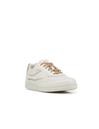 Sneakers basses pour homme 100 % durables et au design contemporain, nées de la collaboration entre Geox et ACBC, entreprise leader sur le marché des chaussures écologiques. La tige de ce modèle, proposée ici dans une indémodable version blanche, joue avec les contrastes de texture et de brillance, en associant matière à effet cuir foulonné et toile. Chaque partie de ces chaussures confortables et souples a été fabriquée en utilisant exclusivement des matériaux recyclés, biologiques et sans matières premières d’origine animale. Les Warrens sont proposées avec deux paires de lacets différents : les premiers en fibre de jute recyclable à 100 %, les seconds en ReBotilia, un matériau dérivé de bouteilles en PET recyclées.