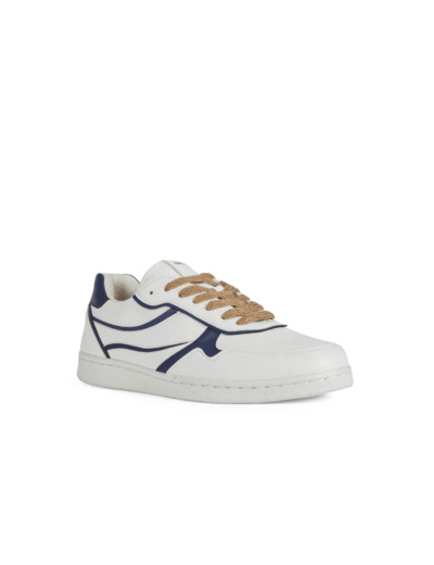 Sneakers basses pour homme au design élégant et dynamique, réalisées en matériaux durables certifiés. Les Warrens font partie de la nouvelle capsule créée par Geox en collaboration avec ACBC, une entreprise leader sur le marché des chaussures écologiques. La tige joue sur les contrastes de texture et de brillance, entre une base en matière à effet cuir foulonné blanche et un motif latéral sinueux bleu en matière à effet cuir lisse. Confortable et souple, avec une semelle extérieure imperméable et respirante, chaque partie de cette chaussure a été produite en utilisant uniquement des matériaux recyclés, biologiques et sans matières premières d’origine animale. Deux alternatives sont également proposées pour les lacets : la première en fibre de jute et 100 % recyclable, la seconde en ReBotilia, dérivé de bouteilles PET recyclées.