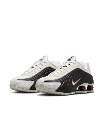 Cette chaussure associe une empeigne en synthétique et tissu, agrémentée de perforations découpées au laser pour une meilleure respirabilité. Son design s’inspire des modèles haute performance, offrant une allure dynamique et contemporaine qui ne passe pas inaperçue. L’amorti Nike Shox, signature de la gamme, répartit efficacement le poids pour un confort optimal tout au long de la journée.