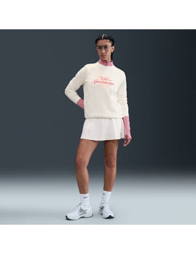 Conçu en fleece semi-brossé, ce sweat combine une surface extérieure lisse avec un intérieur légèrement duveteux, offrant une sensation de chaleur sans alourdir. Sa coupe standard assure une liberté de mouvement idéale, que ce soit pour une journée active ou une pause détente. Le style minimaliste signé Nike s’intègre facilement à toutes vos tenues, du streetwear au casual chic.