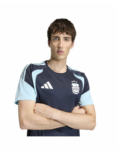 Ce maillot bleu, aux finitions soignées, est confectionné en 100 % polyester, garantissant légèreté et durabilité. La structure en interlock assure une excellente résistance tandis que la finition hydrophile optimise l’évacuation de l’humidité. Le panneau avant présente un design en relief qui apporte une touche de modernité et de dynamisme, tandis que les inserts en mesh placés stratégiquement sur la poitrine renforcent la ventilation là où elle est la plus nécessaire. Le logo Adidas et l’emblème de l’Argentine sont visibles, soulignant l’authenticité et la qualité du produit. Ce maillot ne comporte ni fermeture ni éléments superflus, privilégiant une simplicité fonctionnelle adaptée à la pratique sportive.