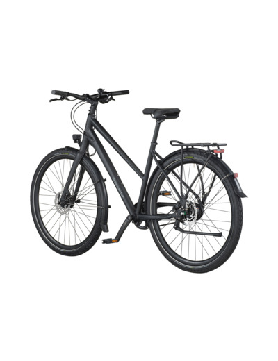 Ce modèle est équipé d’une transmission par courroie Gates Carbon Drive à 8 vitesses Shimano Alfine, qui nécessite très peu d’entretien comparé à une chaîne classique. Cette technologie garantit une transmission silencieuse, durable et propre, idéale pour un usage quotidien.