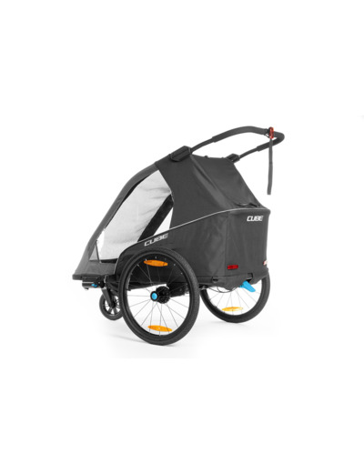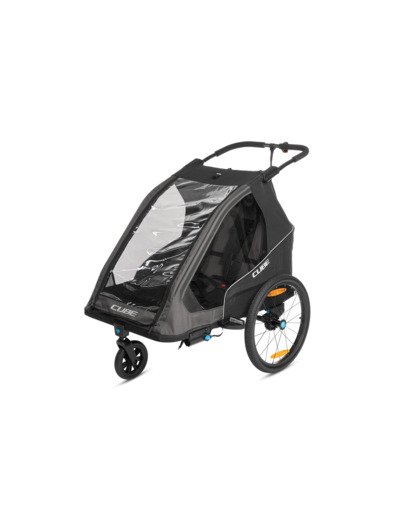 La remorque pour enfants Double PURE est dotée de fonctions intelligentes qui facilitent la vie. La ventilation latérale assure un climat confortable à l'intérieur de la remorque, tandis que la suspension intégrée absorbe les chocs et les vibrations pendant le voyage. Les roues à dégagement rapide sont faciles à monter et à démonter pour le rangement, etc. Des éléments réfléchissants améliorent la visibilité dans la circulation et un compartiment à bagages aux dimensions généreuses offre beaucoup d'espace pour vos bagages. Livraison avec une barre de remorquage, un drapeau de sécurité, une roue de buggy et un feu arrière avec piles. La charge maximale est de 42 kg et le poids de la languette est de 1 à 8 kg.