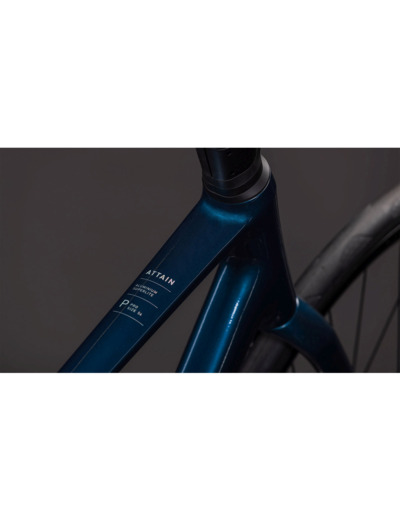 Le vélo ATTAIN PRO Bleu Marine est disponible en sept tailles : 47, 50, 53, 56, 58, 60 et 62 cm, permettant de trouver l’ajustement idéal pour chaque cycliste. Son poids total est de 10,5 kg, un excellent compromis entre légèreté et robustesse pour la route.