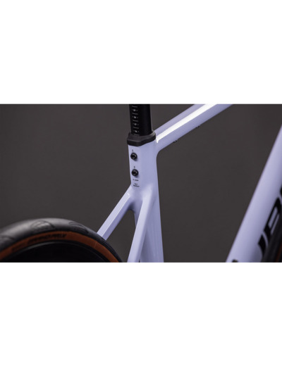 Le cadre est en aluminium 6061 T4/T6 Superlite avec une géométrie Road Comfort, intégrant un passage de câbles interne et un serrage de tige de selle intégré. La fourche Cube CSL Race Disc est en carbone, légère et rigide, avec un pivot conique 1 1/8 - 1 1/4 et un montage Flat Mount pour les freins à disque. Ces éléments assurent un excellent compromis entre confort, maniabilité et performance.