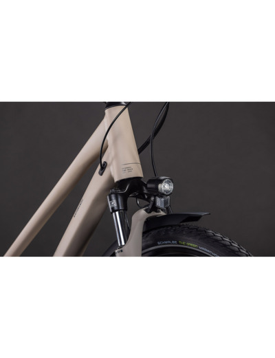 La fourche suspendue Suntour NEX absorbe les chocs des routes accidentées pour un confort accru. Les freins à disque hydrauliques Shimano garantissent un freinage puissant et fiable par tous les temps. Les pneus Schwalbe Marathon Green offrent une excellente adhérence tout en étant écologiques grâce à leur caoutchouc recyclé.