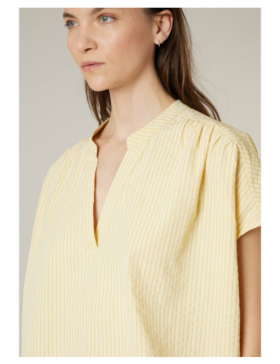 Ce chemisier est proposé dans une teinte jaune lumineuse, idéale pour apporter une touche de fraîcheur et de modernité à votre garde-robe.