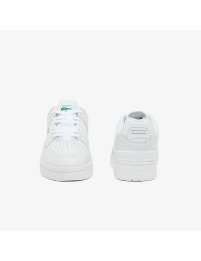 Ces chaussures présentent une tige en cuir blanc lisse, offrant une finition raffinée et une résistance naturelle. La silhouette est moderne et dynamique, avec des lignes nettes et un design minimaliste qui met en valeur la qualité des matériaux. Le logo Lacoste, discrètement apposé sur le côté, souligne l’authenticité et le prestige de la marque. La semelle en caoutchouc blanche assure une adhérence fiable et une bonne durabilité, tout en apportant une touche de légèreté à l’ensemble. La fermeture classique par lacets garantit un maintien ajusté et personnalisé. Les coutures apparentes sont précises et renforcent la structure sans alourdir le design, tandis que la forme basse de la chaussure facilite la liberté de mouvement.