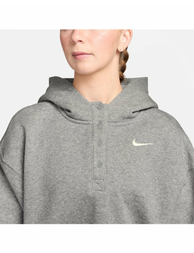 De quel matériau est composé le sweat à capuche Femme W NSW PHNX FLC OS CRP HNLY HDY Gris ?