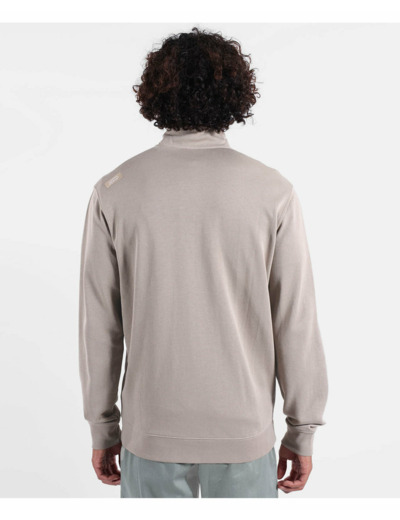 Sweat col montant, entièrement zippé, finition bords-côtes corps et poignets, poches avant, graphisme spiral brodé poitrine, french terry écologique.