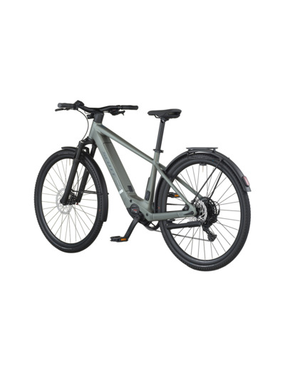 Le vélo est équipé de freins à disques Shimano fiables, d’un éclairage avant Lezyne Fusion E550SM et arrière Supernova TL3Z pour une visibilité optimale. La fourche SR Suntour NRX32-E Air avec 75 mm de débattement absorbe les irrégularités, tandis que les pneus Schwalbe G-One Overland offrent une bonne adhérence sur route urbaine.