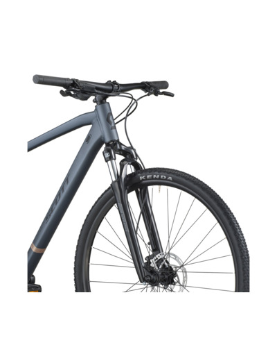 Le vélo est équipé d’un dérailleur arrière Shimano Cues 11 vitesses pour des changements de vitesse précis et fiables. Ses freins à disque Tektro HD-M275 assurent un freinage puissant et sécurisé. Les pneus Kenda Booster 700 x 45C offrent une bonne adhérence et un confort optimal sur différents types de revêtements.
