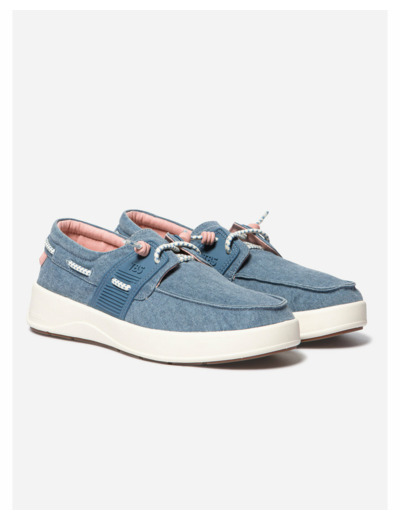 Ces chaussures présentent une silhouette classique de bateau, reconnaissable par leur forme basse et leur empeigne en textile bleu, offrant une excellente respirabilité. La tige en textile se distingue par une finition soignée avec des coutures apparentes qui renforcent la structure tout en apportant une touche d’authenticité. Le logo TBS est discrètement apposé, témoignant de la qualité et du savoir-faire de la marque. La semelle en caoutchouc assure une adhérence optimale sur diverses surfaces, garantissant stabilité et sécurité à chaque pas. La fermeture est simple, sans lacets ni attaches visibles, ce qui facilite l’enfilage et le retrait tout en conservant un design épuré.