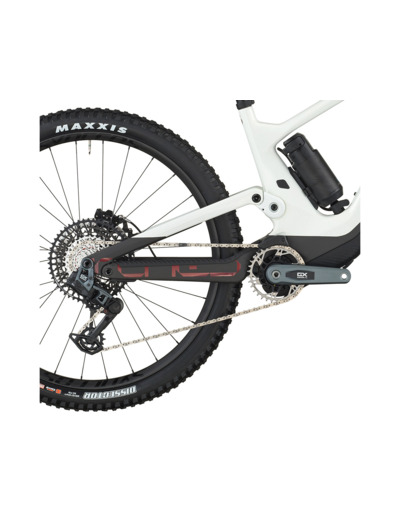 Caractéristiques : Cadre Carbone HMF, Technologie de suspension intégrée, cinématique Virtual 4 Link, Angle de direction réglable, Système d’intégration des câbles Syncros, TQ HPR60, Interface UDH, 12 x 148 mm, avec une ligne de chaîne de 55 mm