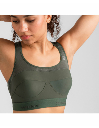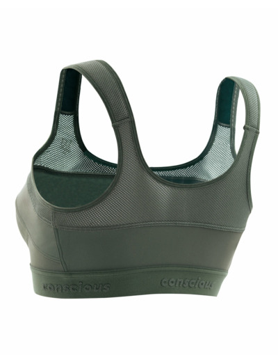 Brassière de sport femme éco-responsable maintien supérieur Thuasne TOP’ STRAP CONSCIOUS La brassière éco-responsable TOP' STRAP CONSCIOUS combine performance et engagement vers une mode plus durable. Conçue avec au moins 59% de matières recyclées, elle assure un maintien supérieur pour les sports à impact modéré, tout en respectant l'environnement. Les 41% de matières non recyclées (comme la basque sous la poitrine) permettent de garantir un niveau de performance élevé. Une nouvelle couleur vert kaki et un élastique brodé conscious viennent sublimer cette brassière aussi stylée que performante. Parce que chaque geste compte, même dans le choix d'une brassière de sport. Un maintien performant pour vous, un premier pas pour la planète : Garantir un niveau de maintien optimal tout en respectant l'environnement a exigé créativité et innovation. Nous avons dû repenser notre processus de développement afin de vous offrir un produit composé de matières recyclées.
