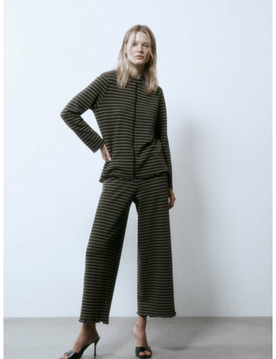 Material composition: 54% polyester, 31% cotton, 13% viscose, 2% elastane. Brand origin: Spain. Care instructions: machine wash for easy maintenance. Available in EU size M, part of the Fall Winter 2023 collection. Color: olive. Suitable for general casual activities.