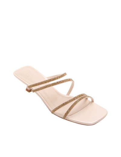 Crafted from fine materials, these beige heels offer a lightweight and soft texture that moves with you, ensuring pain-free wear throughout your day. The unique glitter strap design adds a touch of glamour, making your outfit stand out whether you're at a casual gathering or a special event. Their versatile style ensures you look polished and confident wherever you go.