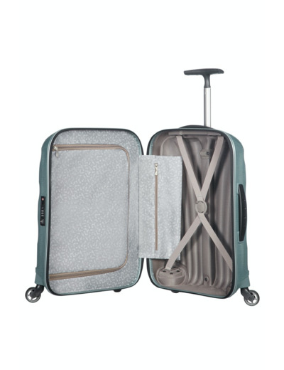 Information sur notre produit : Cosmolite Spinner 55/20 Fl2 de couleur : ICE BLUE. Ce produit à une dimension : 40x55x20, un volume de : 36.0 L - 1.7 KG, une matière qui est HS Curv et ce produit possède 4 roulettes