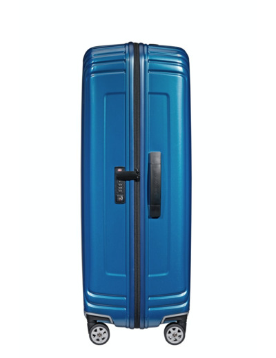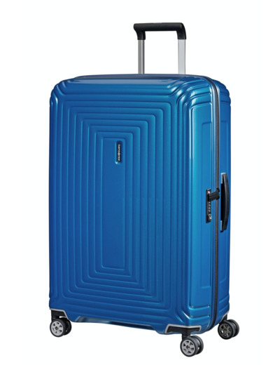 Information sur notre produit : Neopulse Spinner 75/28 de couleur : METALLIC INTENSE BLUE. Ce produit à une dimension : 75 x 51 x 28 cm, un volume de : 94 L - 3.4 KG, une matière qui est 100% Polycarbonate et ce produit possède 4 roulettes