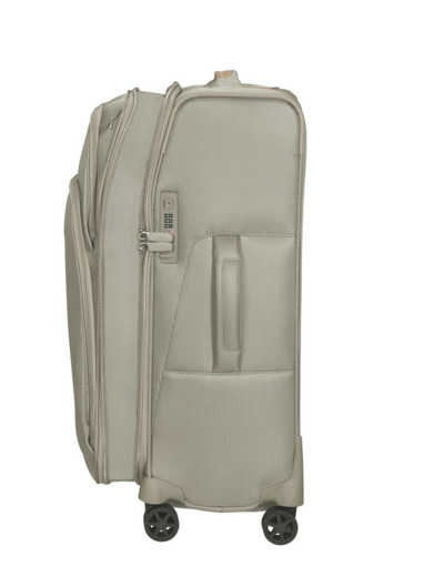 Information sur notre produit : Spark Sng Eco Spinner 67/24 Exp de couleur : SAND. Ce produit à une dimension : 67 x 44 x 27 cm / 31cm, un volume de : 82/92 L - 3.2 KG, une matière qui est 100% Recyclex® et ce produit possède 4 roulettes