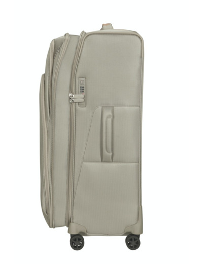 Information sur notre produit : Spark Sng Eco Spinner 79/29 Exp de couleur : SAND. Ce produit à une dimension : 79 x 48 x 31 cm / 35cm, un volume de : 124/140 L - 3.7 KG, une matière qui est 100% Recyclex® et ce produit possède 4 roulettes